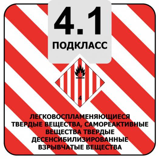 4.1 Легковоспламеняющиеся твердые вещества, способные легко воспламеняться от кратковременного воздействия внешних источников воспламенения (искры, пламени или трения) и активно гореть;