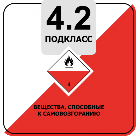 4.2 Самовоспламеняющиеся вещества, которые в обычных условиях транспортирования могут самопроизвольно нагреваться и воспламеняться;
