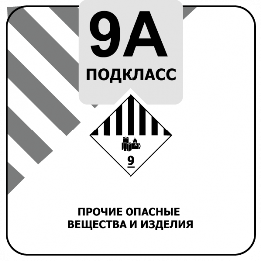 Вещества с относительно низкой опасностью при транспортировании, не отнесённые ни к одному из предыдущих классов, но требующих применения к ним определённых правил перевозки и хранения.